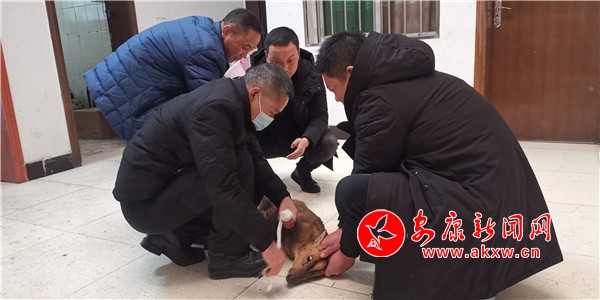 接到報(bào)告后,大竹園鎮(zhèn)派出所、農(nóng)綜站、綜合執(zhí)法辦公室三部門(mén)聯(lián)合出動(dòng),迅速趕往現(xiàn)場(chǎng),通過(guò)現(xiàn)場(chǎng)比對(duì)鑒定,發(fā)現(xiàn)這只小動(dòng)物是國(guó)家二級(jí)野生保護(hù)動(dòng)物麂子。為穩(wěn)定麂子傷情,工作人員現(xiàn)場(chǎng)進(jìn)行了傷口處理,并將其帶回鎮(zhèn)農(nóng)綜站邀請(qǐng)獸醫(yī)進(jìn)行診治。