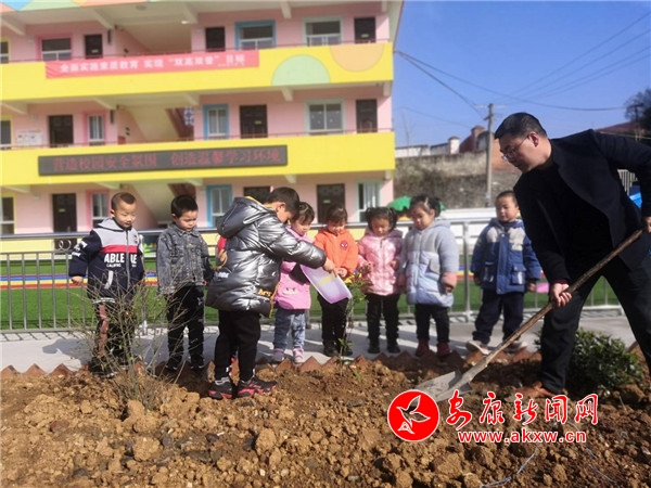 本網(wǎng)訊(通訊員 章軒 謝曉溪)陽春三月,草長鶯飛間,冬天的寒意還未褪去,春天帶著綠色的氣息走來,春風吹綠了枝頭上的嫩芽,吹綠了校園的小草,也吹動了師生愛綠護綠、裝扮校園的熱情。3月12日,漢濱區(qū)流水鎮(zhèn)學坊埡小學和學坊埡社區(qū)幼兒園舉行了植樹節(jié)系列活動。Q8W安康新聞網(wǎng)