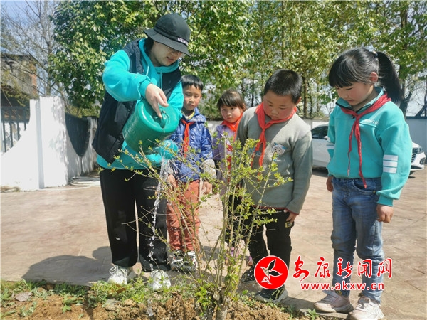植樹后,孩子們參與了“愛綠護綠”校園實踐活動。負責教師對學生們進行了明確的分工,同學們個個熱情高漲,拔除雜草,為景觀草澆水,灌溉樹木;幼兒園的小朋友們在老師的帶領下親手種下一棵棵小樹,并細心為小樹澆水、起名。學生分工明確,教師指導到位,師生攜手共同圓滿地完成了此次實踐活動。Q8W安康新聞網(wǎng)