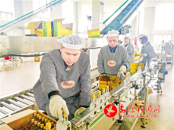 走進陜西瀘康酒業(yè)(集團)公司成品二車間,只見近千平方米的大廳中,三條生產(chǎn)線平行分布。正在進行小瓶瀘康酒灌裝的二班,他們三五人一組在生產(chǎn)線旁,或上瓶洗瓶、或灌裝檢驗、或貼標裝盒、或包裝入庫,分工協(xié)作,緊張有序。
