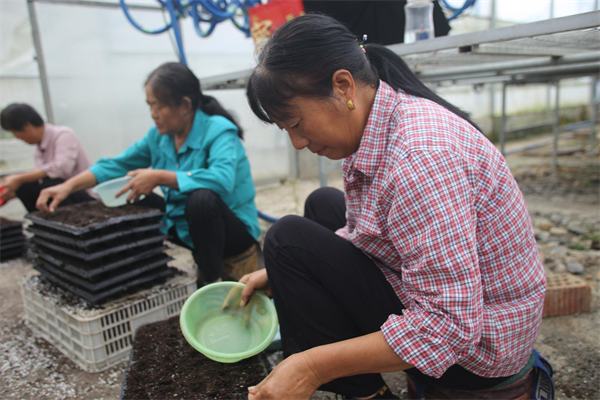 火車跑得快,全靠車頭帶。劉瑞紅充分發(fā)揮黨支部和村“帶頭人”模范作用,建立了土地經(jīng)營權(quán)入股分紅、大棚反租倒包、免費技術(shù)培訓(xùn)、簽訂生產(chǎn)訂單、固定園區(qū)務(wù)工等多種機(jī)制,把貧困戶嵌入蔬菜產(chǎn)業(yè)鏈,獲得穩(wěn)定收益。同時,全面推行黨員設(shè)崗定責(zé)、聯(lián)戶幫扶工作機(jī)制,采取“一幫一”或“一幫多”的方式精準(zhǔn)幫扶,全村70%的勞動力都從事蔬菜種植,90%的貧困戶都通過種菜實現(xiàn)了脫貧。
