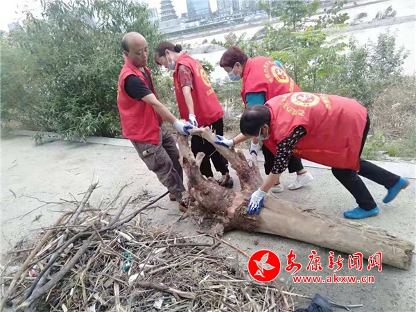 “草地上的那些浮草、枯枝和塑料袋,我們用垃圾車(chē)運(yùn)走,有些木頭和大樹(shù)根得幾個(gè)人才抬得動(dòng),還有那些訊后的清淤?zèng)_沙工作難度較大。”大北社區(qū)護(hù)河員海燕說(shuō)。9月8日,天氣放晴、水位逐漸下降后,老城街道辦事處創(chuàng)建辦迅速組織沿江各社區(qū)護(hù)河員開(kāi)展?jié)h江環(huán)境衛(wèi)生清理整治,清掃河岸爛渣廢料,撿拾草地綠化帶垃圾雜物,沖洗淤泥河沙。截至目前,已清理汛后垃圾35車(chē),清洗沖刷淤泥8000余平方米。目前,清理工作還在繼續(xù),老城創(chuàng)建辦帶領(lǐng)著這支護(hù)河隊(duì)伍緊張有序的忙碌著,河道和江邊的垃圾清理工作正穩(wěn)步推進(jìn)。