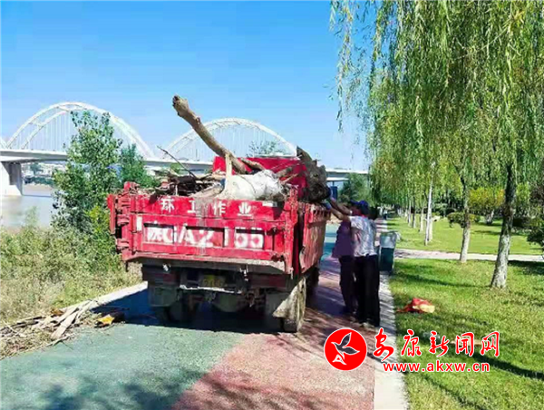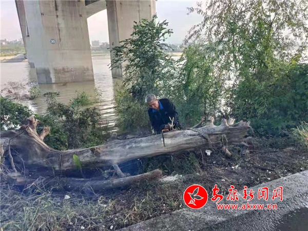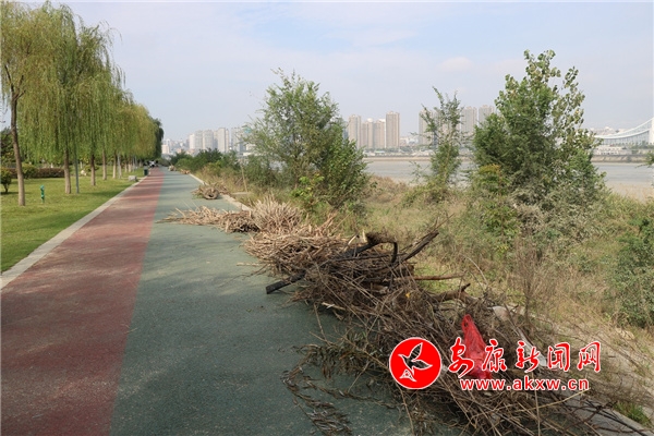 行動中,護(hù)河員和專業(yè)施工隊員密切配合,對漢江南岸金川段、心石段、油坊段、白廟段河道護(hù)坡及岸邊的雜樹木進(jìn)行拉網(wǎng)式清理整治,工人們利用電鋸、刀等工具,將粗大雜樹木進(jìn)行切割規(guī)整,連同細(xì)小樹枝雜草一道搬至步道,然后用車統(tǒng)一運走。據(jù)了解,截至9月23日,共清運走雜樹木60余車,讓河岸與周邊的美景更好融為一體。