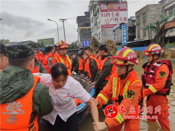 9月28日,漢濱區(qū)消防隊(duì)員緊急調(diào)集皮筏艇、沖鋒舟救援城東受災(zāi)群眾,協(xié)助轉(zhuǎn)移。(記者 唐正飛 通訊員 李大濤) iWr安康新聞網(wǎng)