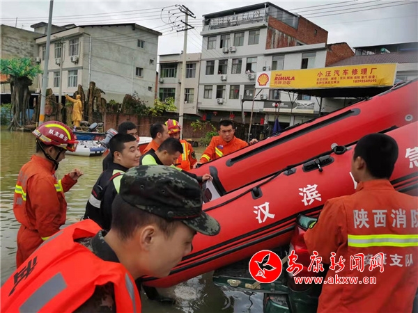 漢濱消防緊急調(diào)集皮筏艇、沖鋒舟救援城東受災(zāi)群眾