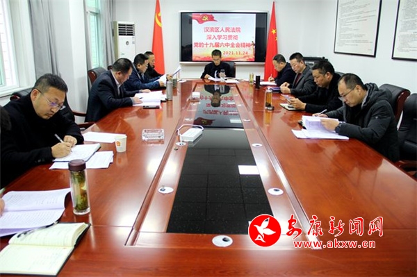 本網(wǎng)訊(通訊員 劉華渝)11月24日,漢濱區(qū)人民法院召開(kāi)黨組會(huì)議,學(xué)習(xí)貫徹習(xí)近平總書記在黨的十九屆六中全會(huì)上的重要講話和全會(huì)精神。