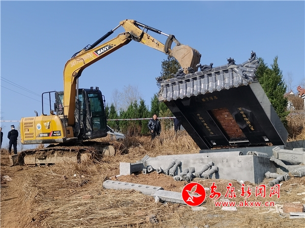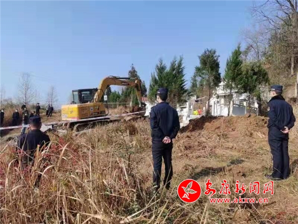 在漢濱區(qū)建民街道紅蓮村,由漢濱區(qū)民政、林業(yè)部門和建民街道抽調(diào)的人員開展的大墳大墓整治行動(dòng)正在進(jìn)行。執(zhí)法人員在現(xiàn)場(chǎng)拉起警戒線,動(dòng)用大型機(jī)械,依法拆除違規(guī)違建墳?zāi),并栽種綠植恢復(fù)生態(tài)環(huán)境。