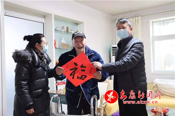 1月24日上午,江北街道黨工委書記向陽來到抗美援朝老兵羅增成家中,感謝他對國家、對人民、對社會所做的貢獻(xiàn),送去節(jié)日問候和祝福,祝老人健康長壽。(通訊員 宋玉鳳) G2s安康新聞網(wǎng)