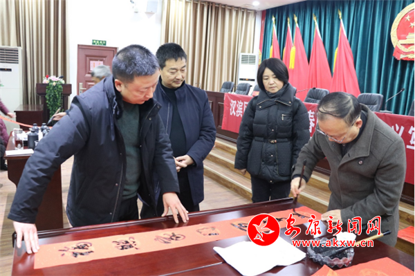 為傳承中華優(yōu)秀傳統(tǒng)文化,營(yíng)造喜慶祥和的節(jié)日氛圍,1月26日,新城街道舉辦“義寫春聯(lián)送祝福 墨香濃情迎新春”活動(dòng);顒(dòng)現(xiàn)場(chǎng),3名書法家揮毫潑墨、筆走龍蛇,行、隸、楷等多種書體各顯神韻,將新春的美好祝福寫進(jìn)春聯(lián)中。“千秋偉業(yè)添錦繡、萬里鵬程展鴻圖”、“歡天喜地辭舊歲、張燈結(jié)彩迎新春”等一幅幅包含濃情、象征平安吉祥的春聯(lián),伴隨著筆墨飛揚(yáng)躍然于紙上,秀美遒勁、瀟灑飄逸。此次活動(dòng)書法家們共書寫了300余幅對(duì)聯(lián),新城街道工作人員將把這些充滿美好祝福的春聯(lián)送到群眾家中。(通訊員 周登喜)