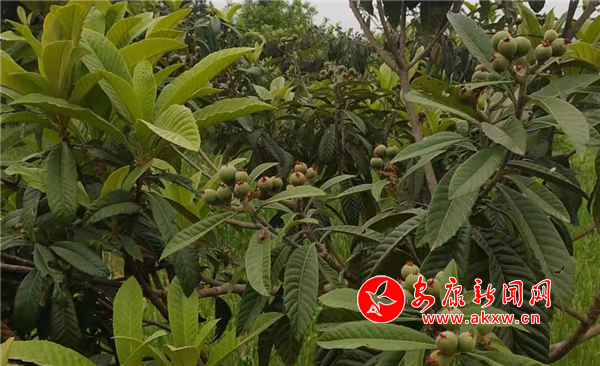 “再過(guò)20來(lái)天枇杷就成熟了”,杜山青指著大片枇杷林說(shuō)。青翠欲滴的枇杷樹長(zhǎng)勢(shì)正旺,隨意撥開巴掌大的墨綠色枇杷葉,就露出了一串串如珍珠般大小、青綠色的枇杷果。