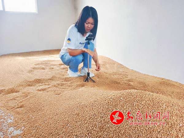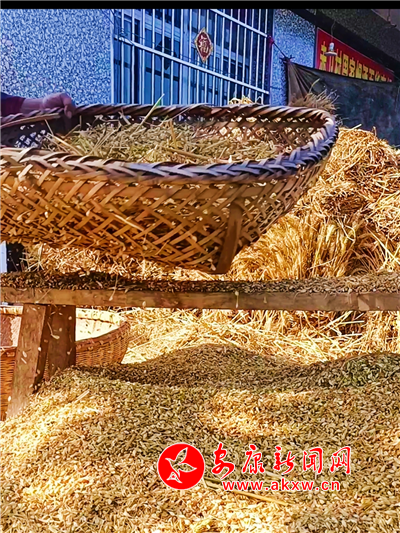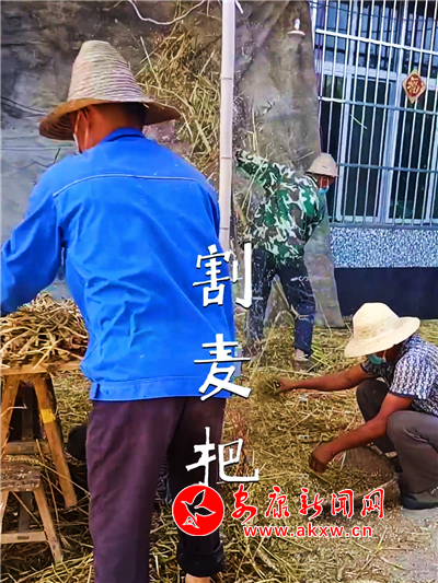 6月6日,驕陽(yáng)似火。漢濱區(qū)赤衛(wèi)村周全洪一家忙得不亦樂(lè)乎,他戴著草帽和口罩,將麥穗一把一把喂進(jìn)脫粒機(jī),幫忙的鄰居們或抱捆持簸或木叉飛揚(yáng),妻子不停地晃動(dòng)手中竹篩,金燦燦的麥粒散落成堆,女兒夢(mèng)蝶一邊端茶水遞毛巾,一邊用手機(jī)直播:“這是陜南農(nóng)村傳統(tǒng)的打麥子方式。”“形象很酷,動(dòng)作很帥……是不是?”“要吃富硒新麥子,可以呀!”益農(nóng)的“新農(nóng)具”,帶貨又漲粉。