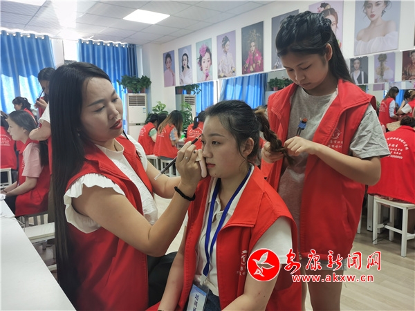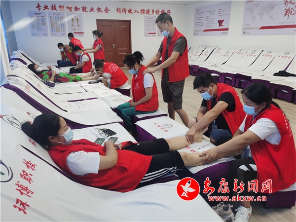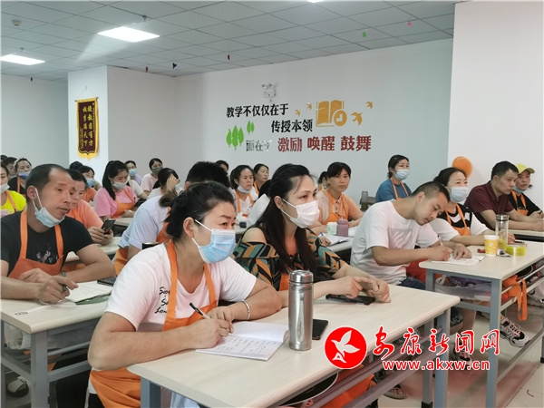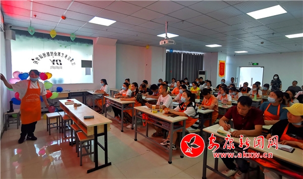圖為:職業(yè)技能培訓機構(gòu)正對學員進行中式面點師和中式烹調(diào)師,修腳足療,美甲化裝等進行面對面培訓。