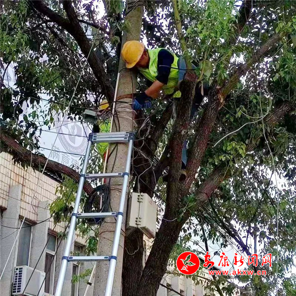 7月11日上午,頂著烈日,現(xiàn)場通訊工作人員正在對中渡路、進站路空中搭掛的線纜進行梳理整治,采取梳理、捆扎、搭梯、剪線等多種方式,對雜亂無章的線纜進行梳理和拆除,進一步規(guī)范各類線網(wǎng),消除安全隱患,確?罩芯路布局科學(xué),還城市一個美麗“天際線”。