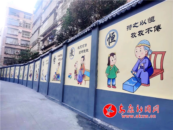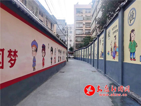 在大北街社區(qū)土地樓巷,破舊的磚瓦墻被重新粉刷的干干凈凈,還設(shè)計(jì)了荷花圖,一張張臉譜將老城巷道添上了一層古樸的面紗。在東關(guān)社區(qū)潘家坑巷道,一側(cè)墻壁設(shè)計(jì)的是代表各個(gè)民族特色的彩繪,象征民族大團(tuán)結(jié),另一側(cè)墻壁設(shè)計(jì)的是孝順、勤勞、節(jié)儉等傳統(tǒng)美德,在西關(guān)社區(qū),設(shè)計(jì)的是龍舟文化……TGW安康新聞網(wǎng)