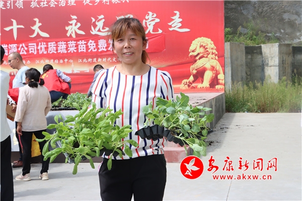 “白菜30株、花菜20株,拿好啊。”社區(qū)支部書(shū)記劉興文一邊說(shuō)著一邊把菜苗遞到吳芳手中。