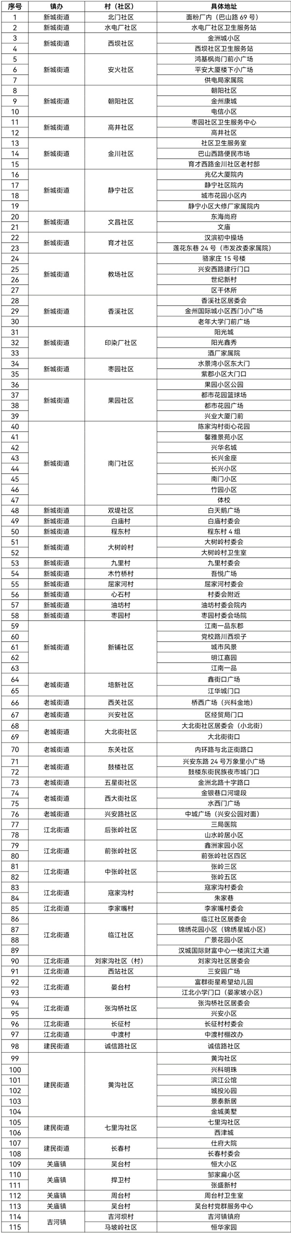 漢濱區(qū)老城街道、建民街道、新城街道、江北街道及關(guān)廟鎮(zhèn)、吉河鎮(zhèn)中心城區(qū)范圍(具體見附件所列村、社區(qū))常住和流動人員一律參加核酸檢測。