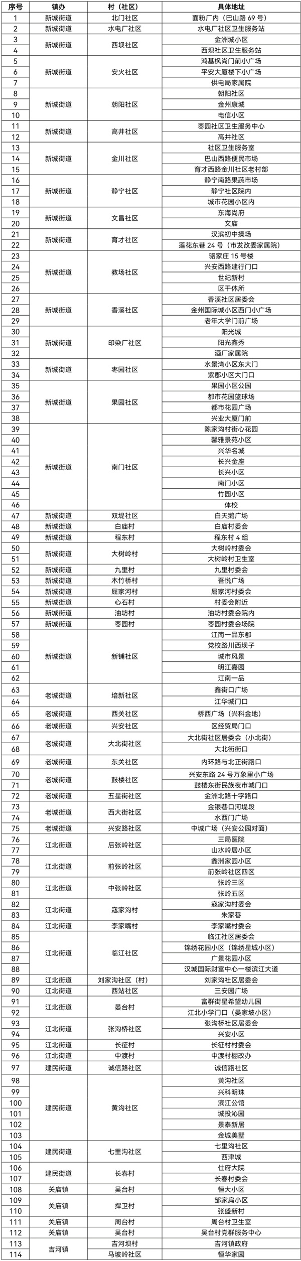 附件:漢濱區(qū)中心城區(qū)全員核酸檢測采樣點一覽表eqa安康新聞網(wǎng)