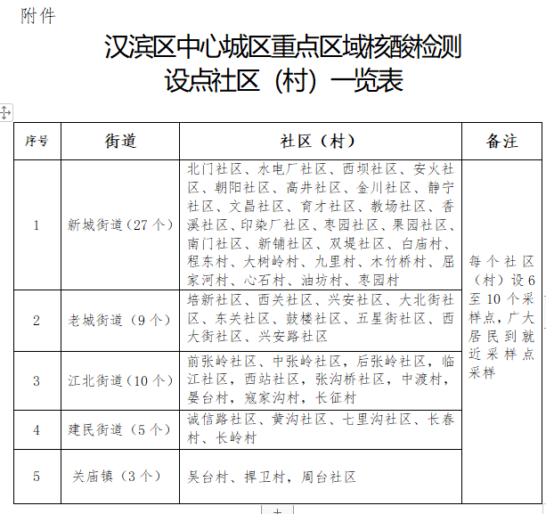 附件:漢濱區(qū)中心城區(qū)重點(diǎn)區(qū)域核酸檢測設(shè)點(diǎn)社區(qū)(村)一覽表