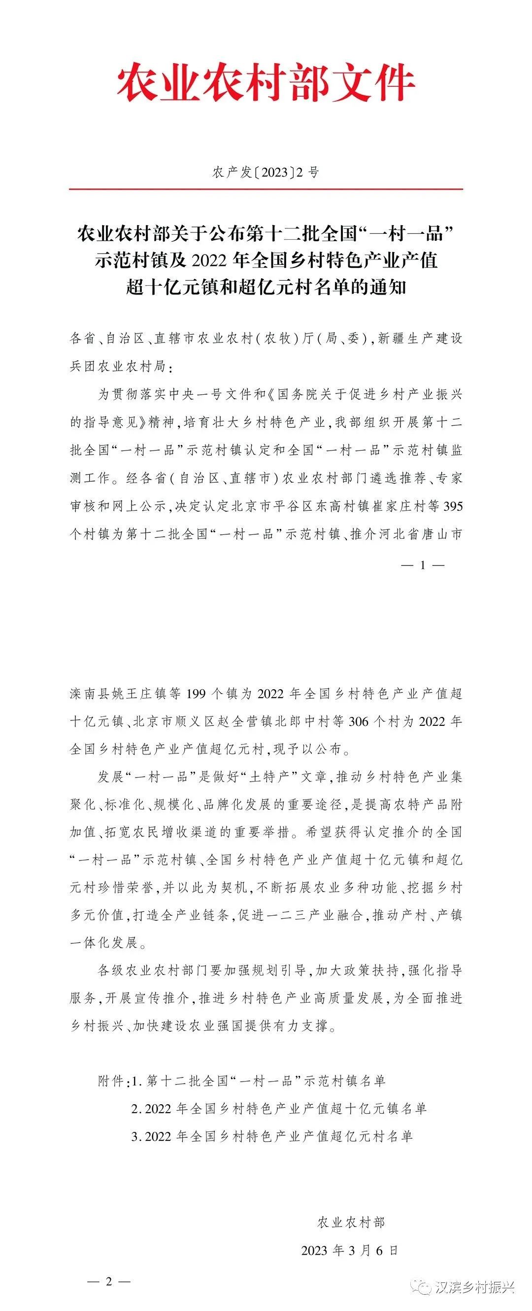 近日,農(nóng)業(yè)農(nóng)村部發(fā)布《關(guān)于公布第十二批全國“一村一品”示范村鎮(zhèn)及2022年全國鄉(xiāng)村特色產(chǎn)業(yè)產(chǎn)值超過十億元鎮(zhèn)和超億元村名單的通知》,漢濱區(qū)晏壩鎮(zhèn)入選第十二批全國“一村一品”示范村鎮(zhèn)名單。