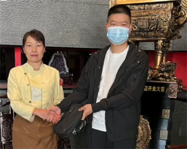 挎包“完璧歸趙”要從4月30日說起。當天,熊先生吃飯后,匆匆離開,隨身攜帶的挎包遺失在安康蓮花餐飲店。挎包內(nèi)有1萬余元現(xiàn)金,還有駕照、身份證、銀行卡等重要證件。安康蓮花餐飲店服務員趙廣勤和保潔員李佰花發(fā)現(xiàn)后,第一時間毫不猶豫地放在餐館的前臺。