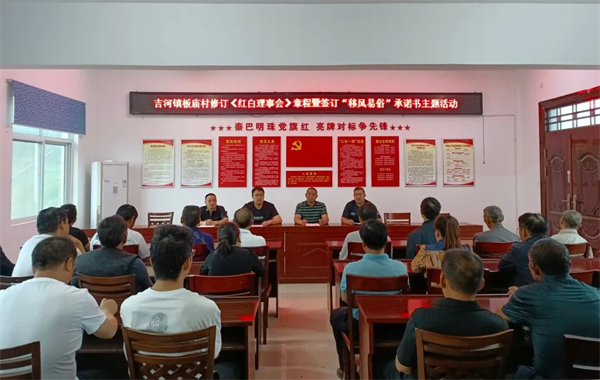 提到此次會議的初衷,板廟村支部書記說道,今年年初,板廟村一組村民吳銀良家中喜得孫子,高興之余以電話、微信等方式邀請親朋好友屆時參加滿月喜宴。支部書記徐高琰在得知這一消息后,第一時間帶領(lǐng)“紅白理事會”成員上門勸導(dǎo)放棄置辦喜宴。通過數(shù)小時政策宣傳、曉之以理動之以情,最終吳銀良高高興興表示:“你們勸的對,置辦喜宴主家麻煩,收禮還得還禮,鋪張又浪費,喜宴我不辦了”。