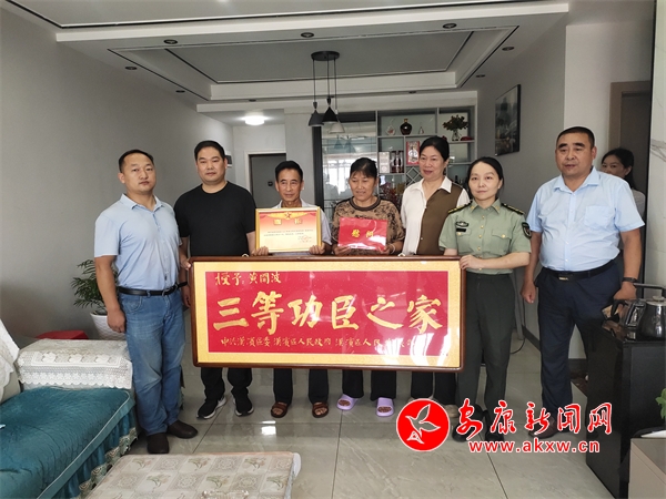 “感謝你們?yōu)閲澜ㄔO(shè)的大力支持和默默付出,也感謝你們?yōu)椴筷犈囵B(yǎng)了一名優(yōu)秀的士兵,一人立功、全家光榮,希望你們繼續(xù)做好兒子的堅強后盾,讓孩子在部隊再立新功。”在現(xiàn)役軍人黃開波的家里,鎮(zhèn)領(lǐng)導(dǎo)把一面“三等功之家”的牌匾送到黃開波的父親黃朝德的手里時動情地說。