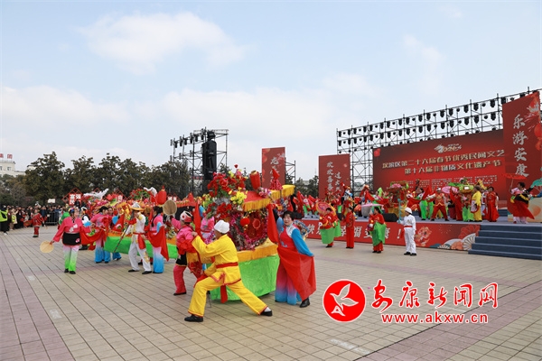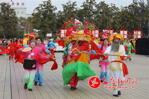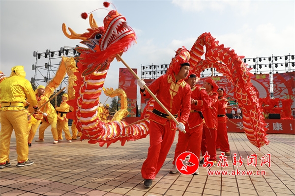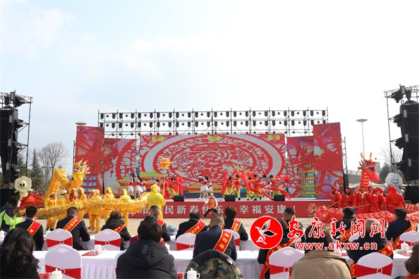 在金州廣場,身著各色演出服裝的演出隊(duì)伍早早就來到了現(xiàn)場為表演做準(zhǔn)備,隨著一聲鑼鼓敲響,開場舞蹈《盛世歡歌》拉開活動(dòng)序幕,花鼓表演唱《花為媒》、女聲合唱《火火的中國》、少兒舞蹈《百花舞》、戲曲聯(lián)唱《新春納福唱二黃》、漢調(diào)二黃歌舞《非遺賀新春》等節(jié)目陸續(xù)上演,營造起了濃濃的節(jié)日氛圍。演員們踏著喜慶的鼓點(diǎn),和著歡快的節(jié)拍舞動(dòng)起來,現(xiàn)場彩龍飛舞,雄獅翻騰,盡顯傳統(tǒng)民俗文化魅力。市民們大飽眼福,紛紛用鏡頭記錄下了各種精彩瞬間。