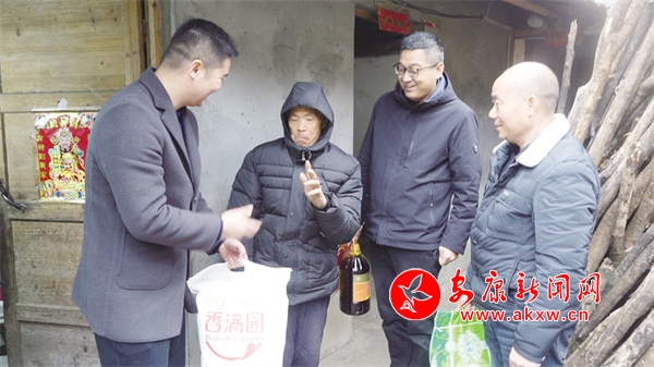 “過年好。恭喜發(fā)財!”“萬物呈祥榮盛世 九龍獻(xiàn)瑞慶良辰。這副對聯(lián)美得很。”“氣溫低,取暖注意安全。”漢濱區(qū)人社局派駐瀛湖鎮(zhèn)陽坡村第一書記李大林和村黨支部書記晏真云一路邊和鄉(xiāng)親們打著招呼、送去祝福,邊叮囑著冬季取暖安全和森林防火等相關(guān)注意事項(xiàng),兩人徑直走到了村民晏世全家中。