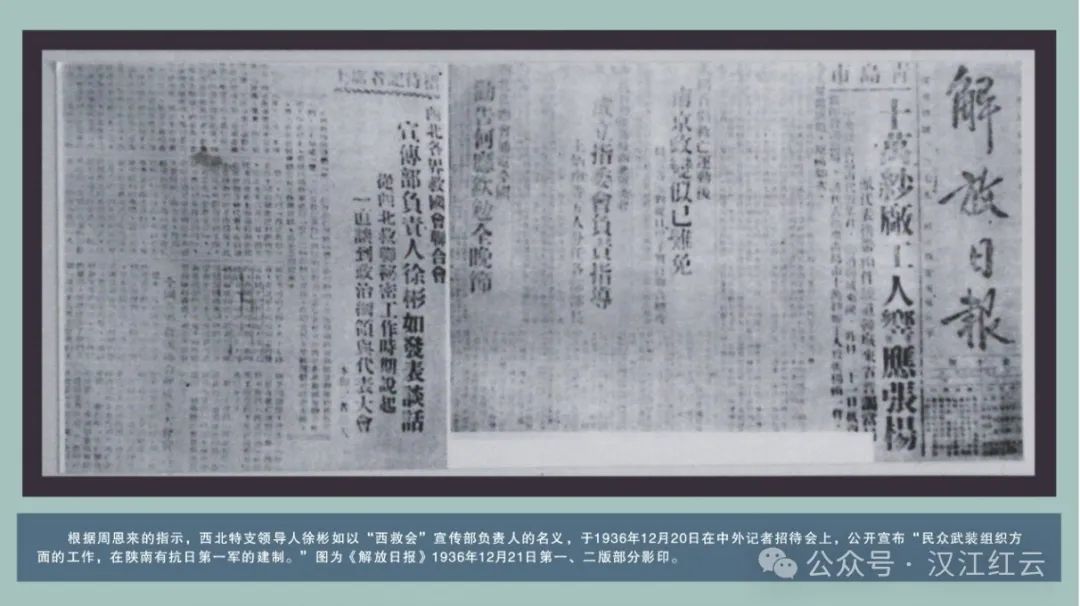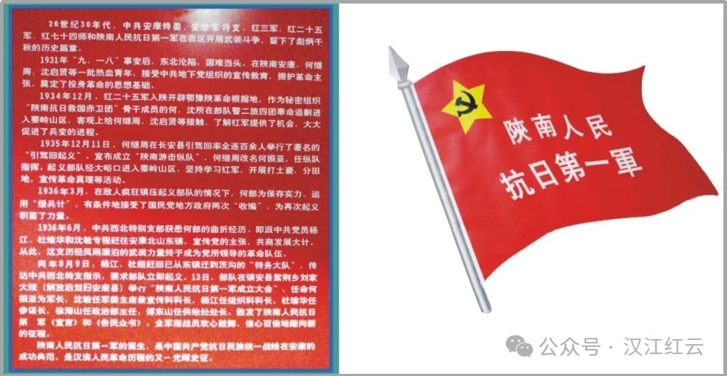 1936年8月13日,根據(jù)黨的指示,何振亞等人在紫荊河劉家大院正式宣告成立陜南人民抗日第一軍。何振亞任軍長,沈啟賢、杜瑜華任參謀長。“西安事變”發(fā)生后,中共西北特支將陜南人民抗日第一軍交由中共中央代表羅瑞卿同志負(fù)責(zé)接收。1936年12月20日,根據(jù)周恩來同志的指示,中共西北特支領(lǐng)導(dǎo)人徐彬如以“西救會”名義在西安舉行中外記者招待會上公開宣布:“在陜南有抗日第一軍的建制”。至此,陜南抗日第一軍揚名中外。