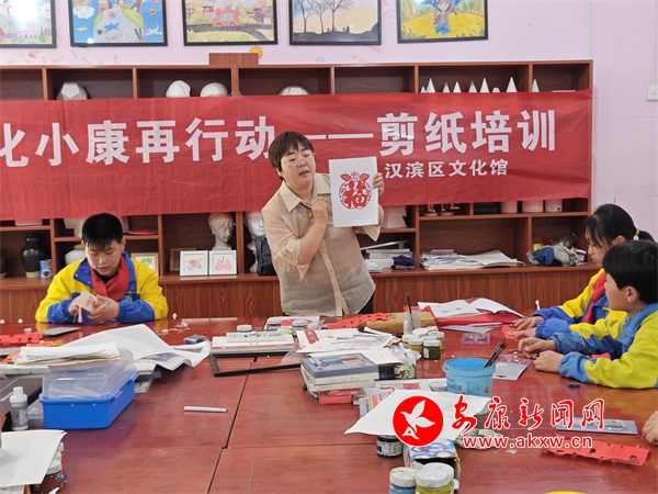 本網(wǎng)訊(通訊員 曹曉琳 劉純汐 夏勤艷)5月14日,漢濱區(qū)文化館聯(lián)合葉坪鎮(zhèn)文化分館舉辦“文化小康再行動(dòng)”系列文化進(jìn)校園活動(dòng),為葉坪鎮(zhèn)葉坪小學(xué)送去音樂、舞蹈、剪紙免費(fèi)培訓(xùn)以及版畫作品流動(dòng)展覽。以城鄉(xiāng)均等的藝術(shù)體驗(yàn)活動(dòng),播撒傳統(tǒng)文化藝術(shù)的種子。