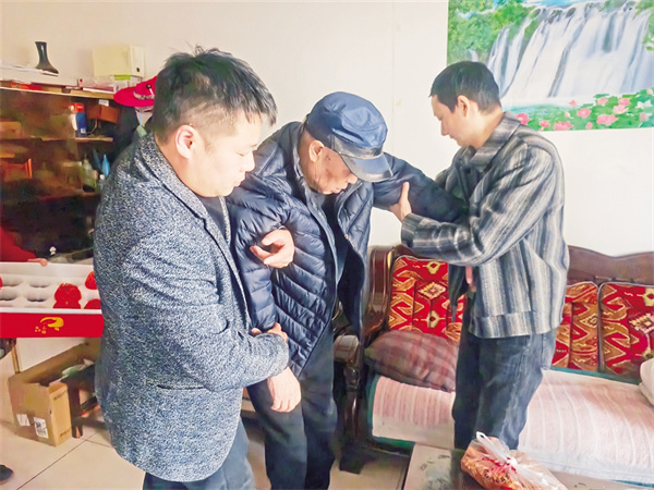 3月19日下午,天氣格外晴朗,看著這樣的好天氣,大媽心想,得讓大爺下樓曬曬太陽,呼吸呼吸新鮮空氣,對身體肯定有好處。于是,她小心翼翼地攙扶著大爺,一步一步慢慢向樓下走去。大爺已經許久沒有接觸外面的世界,見到明亮的陽光,感受著溫暖的日光灑在身上,他的臉上露出了久違的笑容。可誰也沒想到,由于長時間沒有曬太陽,身體一時無法適應,大爺突然感到一陣頭暈目眩,緊接著便直接暈倒在地。大媽頓時慌了神,手足無措地蹲在大爺身邊。就在這萬分緊急的時刻,社區(qū)書記張鵬和幾位工作人員路過巡查時,發(fā)現(xiàn)倒在地上的大爺和一旁驚慌失措的大媽,他立刻飛奔過去,一邊跑一邊大聲說道:“別慌,我們來了!”