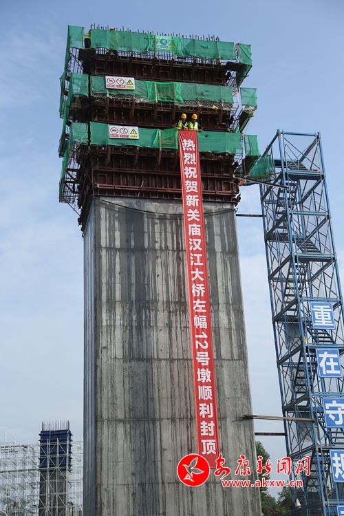 新關(guān)廟漢江大橋左幅12號(hào)橋墩封頂