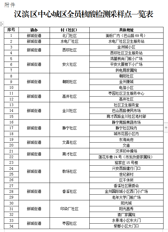 附件:漢濱區(qū)中心城區(qū)全員核酸檢測(cè)采樣點(diǎn)一覽表