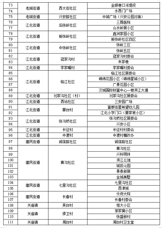漢濱區(qū)老城街道、建民街道、新城街道、江北街道及關(guān)廟鎮(zhèn)、吉河鎮(zhèn)中心城區(qū)范圍(具體見附件所列村、社區(qū))常住和流動(dòng)人員一律參加核酸檢測(cè)。