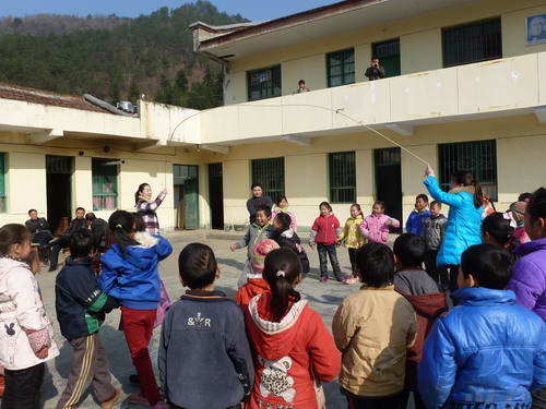 走出三星村,工作隊(duì)順程趕往五坪、清明寨、王家河三所小學(xué),實(shí)地了解學(xué)校部室設(shè)施、課程開(kāi)設(shè)、教師配置、教學(xué)秩序、營(yíng)養(yǎng)餐等情況。在王家河的校園里,12位縣教體局干部和44名小學(xué)生共同開(kāi)展了一節(jié)輕松快樂(lè)的課外活動(dòng)。輕捷的身影在跳繩中跳來(lái)閃去,嫻熟的球技在乒乓桌上自如地?fù)]灑,稚嫩的歡呼聲飄蕩在校園的上空,甜蜜的笑臉綻放在溫暖的陽(yáng)光中。