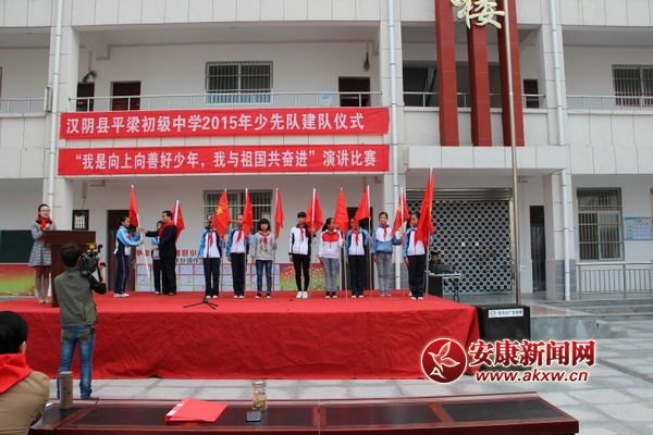 安康新聞網(wǎng)訊 (通訊員 林愛銘) 10月13日上午,伴隨著出旗音樂的響起,平梁初中在教學(xué)樓前拉開了“平梁初中2015年少先隊建隊儀式”的序幕。共青團(tuán)漢陰縣委副書記張歡,教體局工會主席陳文寶應(yīng)邀出席了建隊儀式。