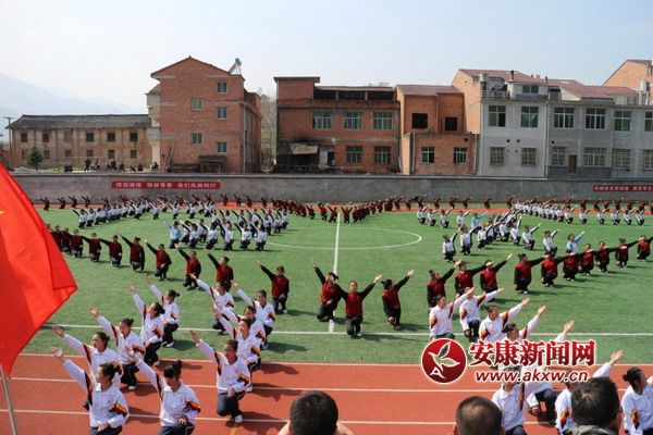 漢陰縣平梁初中舉行軍訓(xùn)匯操表演暨“唱響國(guó)歌”歌詠比賽