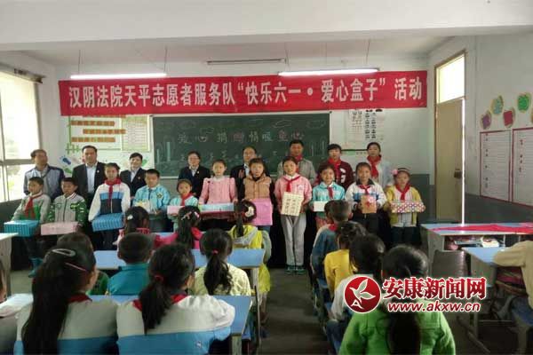 5月27日,漢陰縣人民法院天平志愿服務(wù)隊5余名志愿服務(wù)者冒雨從縣城驅(qū)車50余公里,走進漩渦鎮(zhèn)堰坪小學(xué),將60余份裝有乒乓球拍、圖書、文具等學(xué)習(xí)用品的“愛心盒子”送到留守兒童手中,讓孩子們感受“六一”的快樂。