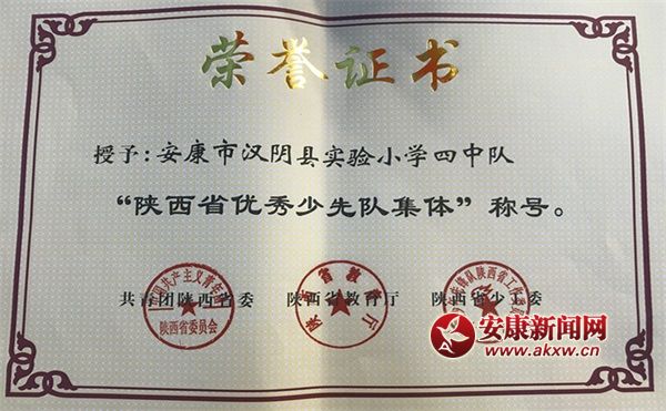 安康新聞網(wǎng)訊(通訊員 林愛銘)日前,在中國(guó)少年先鋒隊(duì)陜西省第七次代表大會(huì)上獲悉,漢陰縣實(shí)驗(yàn)小學(xué)四(一)中隊(duì)、教體局群團(tuán)工作負(fù)責(zé)人陳文保、平梁鎮(zhèn)中心小學(xué)姚仲鑫同學(xué)分別榮獲“陜西省優(yōu)秀少先隊(duì)集體”、“陜西省少先隊(duì)工作先進(jìn)個(gè)人”、“陜西省優(yōu)秀少先隊(duì)員”殊榮。
