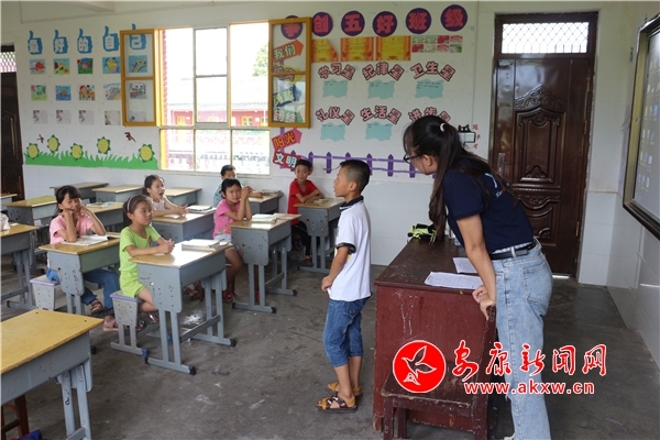 當(dāng)這支熱情洋溢的志愿隊(duì)一跨進(jìn)太平小學(xué),放假的校園頓時(shí)增添了很多生機(jī)。45名學(xué)生回到熟悉的教室,14位大哥哥大姐姐當(dāng)起了輔導(dǎo)教師,教他們做暑假作業(yè)、繪畫練字、背誦詩歌、唱歌跳舞、打籃球……盡管天氣炎熱,大學(xué)生始終按著所排的課表有條不紊地上課。他們還頂著烈日走村到戶進(jìn)行家訪,和家長(zhǎng)交流在校的學(xué)習(xí)表現(xiàn)情況。并與10位建檔立卡貧困學(xué)生進(jìn)行一對(duì)一結(jié)對(duì)幫扶,后期將繼續(xù)給予學(xué)業(yè)輔導(dǎo)和經(jīng)濟(jì)幫助。