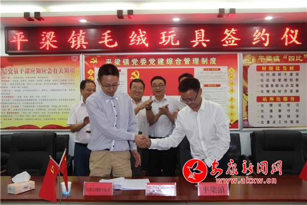 在當(dāng)天的簽約儀式上,揚(yáng)州天利玩具有限公司、揚(yáng)州市樸席環(huán)宇玩具廠與漢陰縣平梁鎮(zhèn)簽訂了毛絨玩具招商項(xiàng)目協(xié)議書(shū)。裴謹(jǐn)副縣長(zhǎng)要求該鎮(zhèn)和企業(yè)積極做好各項(xiàng)準(zhǔn)備工作,迅速組織員工培訓(xùn)和機(jī)械的運(yùn)輸和安裝調(diào)試,確保10月中旬正式開(kāi)機(jī)生產(chǎn)。