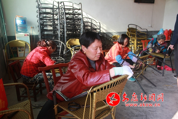 謝開秀告訴記者,“攀花是制作藤椅的最后一道工序,也是最難最繁瑣的,一共要走四道,一個(gè)椅子要用三四個(gè)小時(shí)才能好,開始學(xué)習(xí)了一個(gè)禮拜才學(xué)會”。一手捋起藤條,一手拿著翹刀,一遍遍地為藤椅攀花,對于這份坐在家里賺錢的工作謝開秀很是開心。