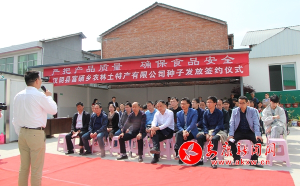 簽約儀式結(jié)束后,漢陰縣富硒鄉(xiāng)農(nóng)林土特產(chǎn)有限公司與農(nóng)戶簽訂了豇豆等蔬菜種植種子發(fā)放簽約儀式。