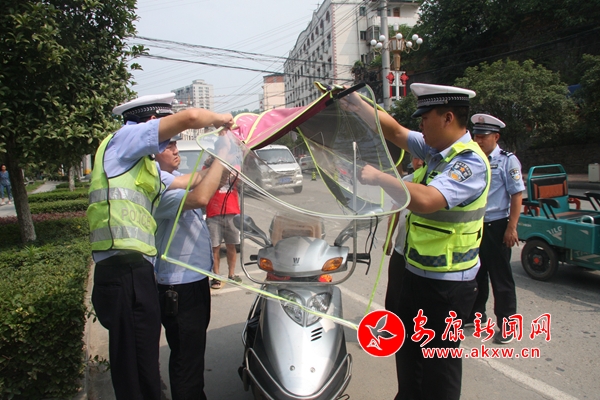 據(jù)統(tǒng)計,漢陰公安交管部門共累計出動警力120余人次,出動警車20輛次,查獲無證駕駛12起,酒駕2起,其它交通違法行為45起,口頭警告糾違騎乘摩托車、電動摩托車未佩戴頭盔120起,收繳拆除違規(guī)加裝遮陽棚(傘)105起,懸掛宣傳橫幅20余條,利用LED電子顯示屏滾動播放提示信息120條,張貼通告100余份,發(fā)放《致全縣摩托車、電動摩托車騎乘人員的一封信》5000余份。同時,還邀請電視臺記者隨警作戰(zhàn),對典型違法行為進(jìn)行曝光,營造濃厚交通安全宣傳輿論氛圍。
