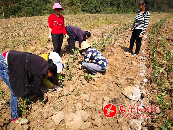 雨過天晴,陜西安康漢陰縣磨壩村茶葉經(jīng)濟(jì)合作社一片忙碌,貧困戶們正搶抓墑情栽種茶苗。該合作社計(jì)劃發(fā)展種茶300畝,目前已經(jīng)栽種120畝,預(yù)計(jì)產(chǎn)值300萬元,能帶動(dòng)92戶貧困家庭穩(wěn)定增收。(辜大勇 攝)mxz安康新聞網(wǎng)