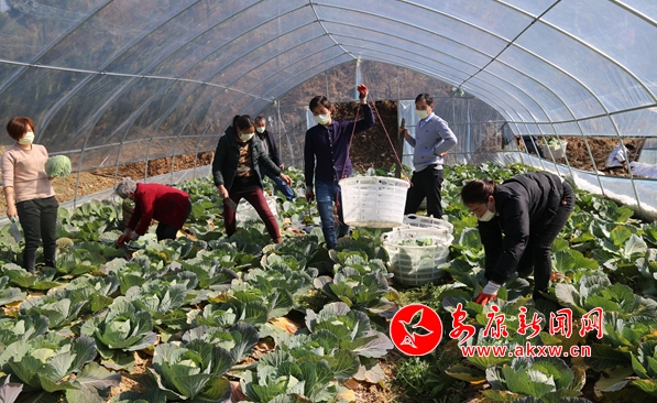 溫室大棚里,成熟的蔬菜紫甘藍(lán)一片豐收,村民們戴著口罩,正在忙碌的收摘蔬菜,據(jù)合作社的村民說這批純天然“好貨”他們還沒舍得吃,是要送給奮戰(zhàn)在抗疫一線的“最美人”的。