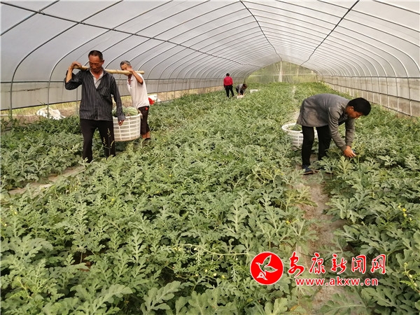 今年初春,西瓜育苗、栽植時節(jié)正值新冠肺炎疫情高峰期,但春耕生產并未延誤。村干部每天到園區(qū)為務工的村民發(fā)口罩、量體溫、消毒,在做好疫情防控的同時也搶抓了農時。種瓜是勞動密集型產業(yè),除草、施肥、打頭、采摘、裝箱、裝車......,在龍埡蔬果產業(yè)體驗園里,每天都有10多名當?shù)卮迕翊蚬,每人每天?00余元的收入。