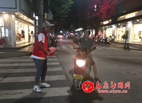 本網(wǎng)訊 (通訊員 羅傳勇)為助力漢陰縣創(chuàng)建省級文明縣城,有效遏制和減少城區(qū)重點路段交通違法行為,大力改善道路交通秩序。8月20日,漢陰縣公安局志愿者服務隊(交管大隊)結(jié)合第三季度道路交通安預防“減量控大”暨“防風險 降事故”攻堅行動、“車讓人、人守規(guī)”文明提升行動和“一盔一帶”安全守護行動工作的要求,在縣城重要路段開展文明交通勸導活動。