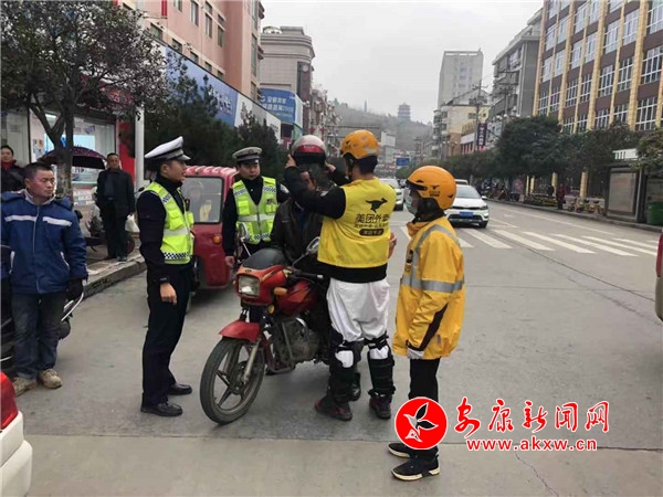 本網(wǎng)訊(通訊員 劉安正 蔣曉桂)為進(jìn)一步提升廣大電動(dòng)自行車(chē)、摩托車(chē)騎乘人員的交通安全意識(shí),督促外賣(mài)行業(yè)駕駛?cè)俗杂X(jué)養(yǎng)成佩戴安全頭盔的良好習(xí)慣,遏制冬季道路交通事故的發(fā)生,積極促進(jìn)社會(huì)各界人士共同關(guān)注交通安全。11月25日,漢陰縣公安局交警大隊(duì)城區(qū)中隊(duì)聯(lián)合美團(tuán)外賣(mài)在北城街、鳳凰廣場(chǎng)紅路燈路口設(shè)置了“一盔一帶”交通違法行為勸導(dǎo)點(diǎn),大力開(kāi)展“一盔一帶”警企聯(lián)合勸導(dǎo)日活動(dòng)。