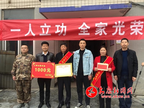 一行人先后來到城關(guān)鎮(zhèn)現(xiàn)役軍人劉家軍家中,為其送去“三等功”喜報和慰問金,對現(xiàn)役軍人劉家軍取得的榮譽表示祝賀,并詳細詢問了劉家軍家屬的生活狀況,感謝他們?yōu)椴筷牎樽鎳囵B(yǎng)了優(yōu)秀的軍事人才,并鼓勵他們要一如既往地支持軍人在部隊安心服役,支持國防建設(shè),爭取再創(chuàng)佳績。劉家軍的父親接過這份承載著榮譽的喜報,深情地表示會繼續(xù)做好軍人的堅強后盾,鼓勵孩子在部隊安心服役、建功軍營。
